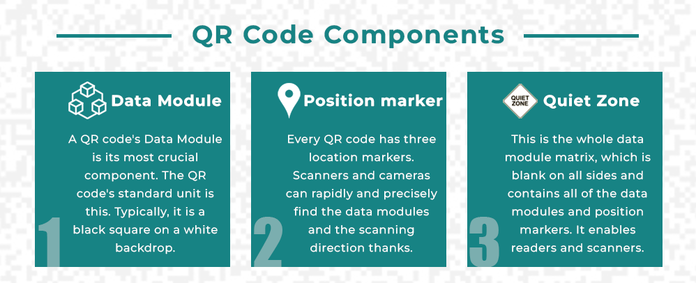 Although they aren’t strictly required to understand if you’re studying how to create a QR code, being familiar with them is beneficial. These QR code components and the QR code’s scannability may be impacted by decisions made during its development.